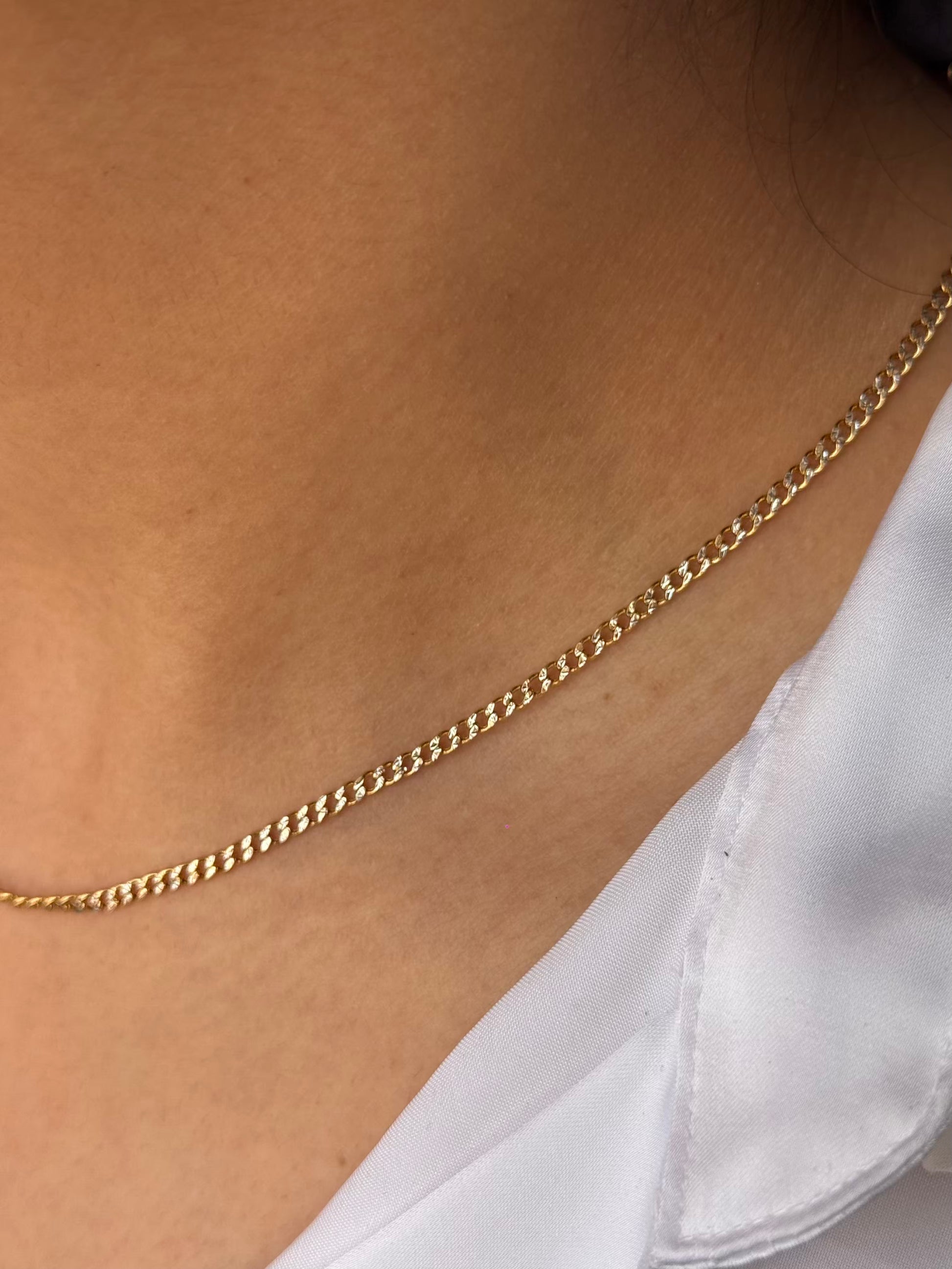 Cadena corte barbado diamantada con oro blanco